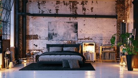 - Estilo con espacios amplios, claros con paredes desnudas.