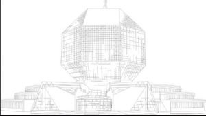 La edificultura cuenta con 22 pisos, presentando una composición planificada y original, donde el «depósito de stock de libros» se asemeja a un diamante.