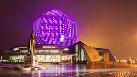La Biblioteca Nacional de Bielorrusia es uno de los primeros ejemplos en donde se instauró la tecnología LED en edificaciones magníficas en formas inigualables que toman por concepto una idea macro que pueda ser inspiradora para quienes lo habiten y la zona en donde se encuentra.